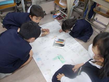 お客さんがたくさん来てくれるような工夫をいっぱい考えました。自分たちのスーパーマーケットがもうすぐ完成します♪