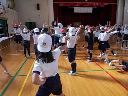クライマックスシーンの練習です。みんなで一つの動きを作り出していきます。息を合わせてがんばっています♪