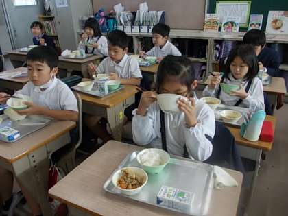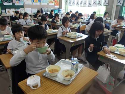 給食の時間が始まりました。今日もおいしくいただきましょう♪