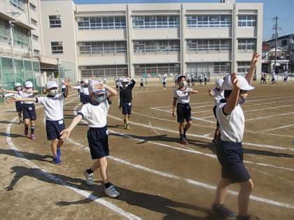 先週一週間は曇天の下での体育が続いていたので,久しぶりの青い空特には気持ちがよく感じられますね。みんな,一生懸命取り組んでいます。ダンスだけでなく移動もかっこいいね♪