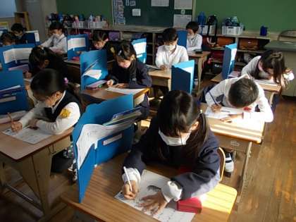 秋見つけ前の一仕事!漢字の確認テストに取り組んでいました。