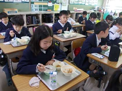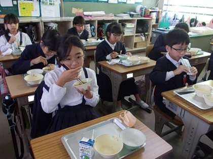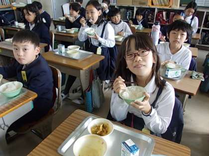 給食の時間が始まりました。今日もおいしくいただきましょう♪