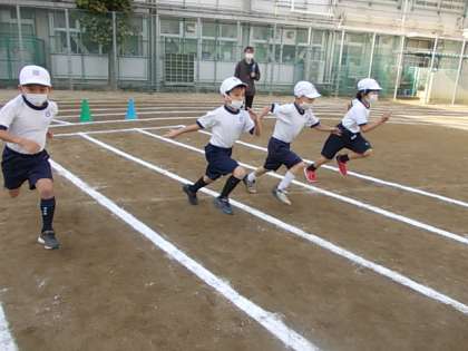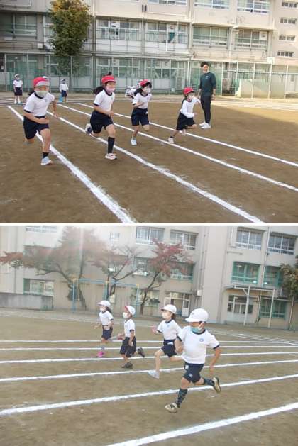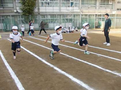 1年生,2年生は直線コースでのかけっこです。最後までまっすぐ走り切れるかな♪