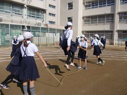 すばらしい運動日和です。みんな,大縄大会に向けての練習に没頭していました♪