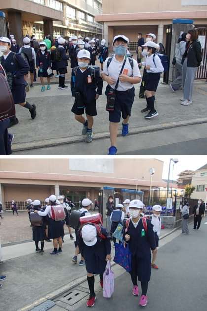 クラブ活動を終えた4年生以上の子どもたちが下校します。みんな気をつけて帰ってね♪