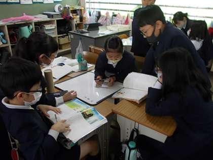 物語「ごんぎつね」を読み深めています。今日は,それぞれのグループでテーマを絞り,みんなでそのことについて考えていました。