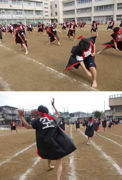 運動場での練習です。みんな,ダイナミックに踊っています。本番が楽しみです♪