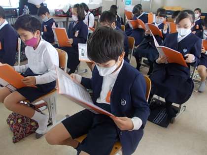 「命の歌」を合唱します。大きな声は出せませんが,みんな,心を込めて歌っています♪