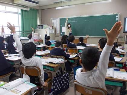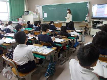 九九の習熟を図っている2年生。今日は,九九の中に隠れている「決まり」を探します。今まで学習してきた中ですでに気付いている決まりもいくつかあるようです。