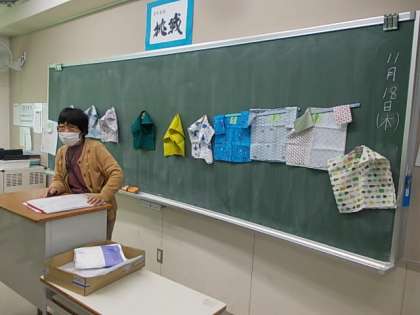 お家の方へのプレゼントを作成します。布から何を作るのかな。喜んでもらえるよう,丁寧に作っていこうね♪