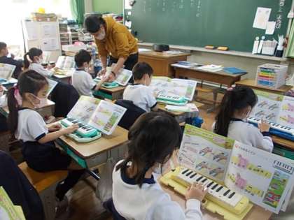 11月19日(金) 1年生音楽「ゆびくぐり」♪