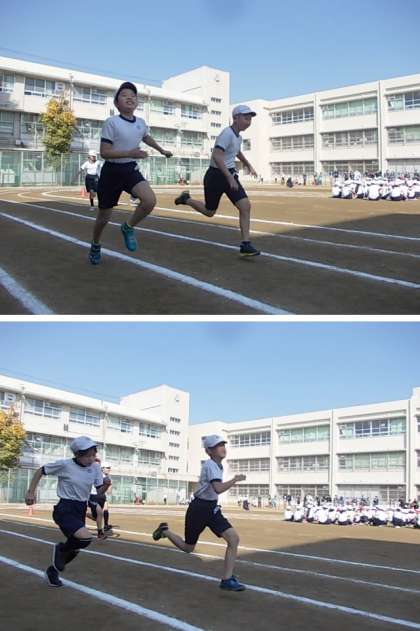100m走です。かっこよくコーナーを駆け抜け,ゴールをめざします♪