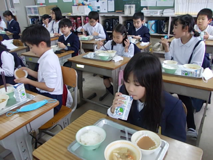 給食の時間が始まりました。今日もおいしくいただきましょう♪