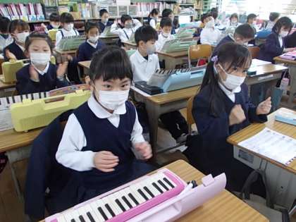 1月13日(木) 1年生音楽「2つのリズムを重ねよう」♪