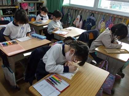 お手伝い「〇〇大作戦」をふりかえって,お家の方にお手紙を書きました。丁寧な字で心を込めて書いています♪