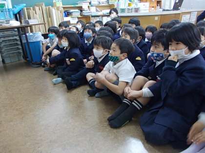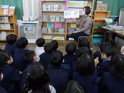 みんなが大好きな図書の時間です。特に司書の先生の読み聞かせは子どもたちのお楽しみタイムとなっています。