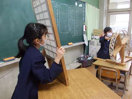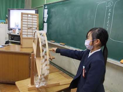 物語「たぬきの糸車」の学習です。しょうじの穴から中の様子を除くたぬきの気持ち,それに気づいているおかみさんの気持ち,それぞれの気持ちを実際に演じることで考えていました。