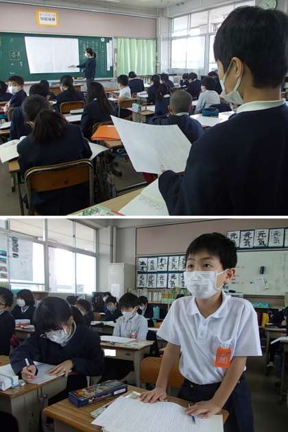 1月20日(木) 4年生国語「3つのまとまりに」♪
