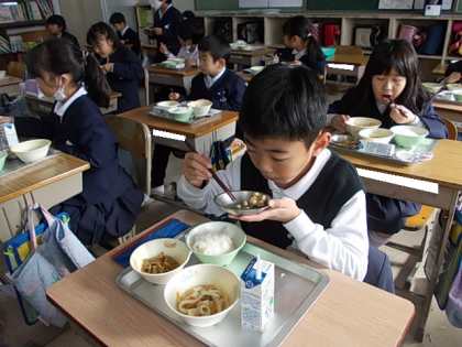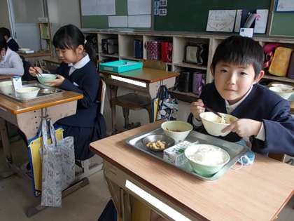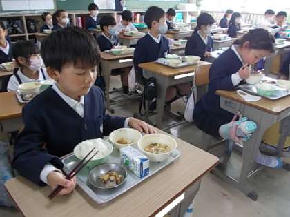 給食の時間が始まりました。今日もおいしくいただきましょう♪