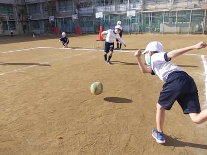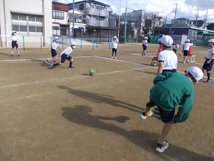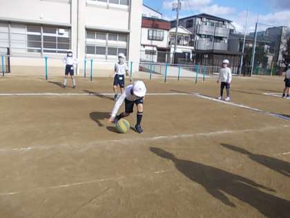 コロコロバレーの学習に取り組んでいます。今日からは,2人対2人での対戦になります。1回の攻撃で3回ボールを触ることができますが,同じ人が連続で触ることはできません。2人のコンビネーションがキーとなりそうです♪