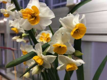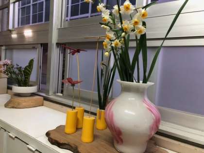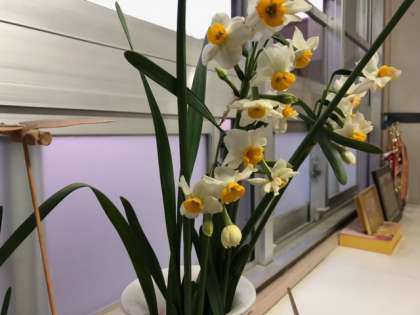 職員靴箱の上にきれいな水仙が♪
