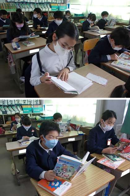 借りてきた本を教室で読みます。ちょっぴり寂しい気もしますが,読書はやっぱり楽しいね♪