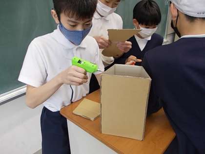 環境にやさしい街を工作で作ってみよう。みんなこだわりを持って作業に取り組んでいました♪