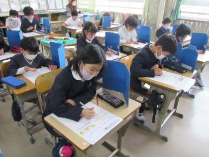 算数のテストに取り組んでいます。うっかりミスをしないよう,しっかり見直ししようね♪