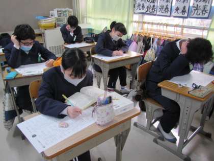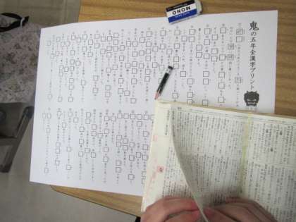 5年生で学習した漢字,しっかり覚えているかな。1年間で学習してきた漢字がすべて出てくる漢字プリントに取り組んでいました。