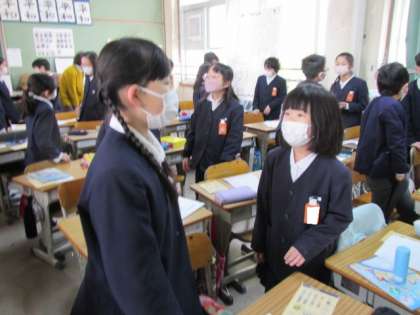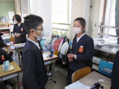 外国語活動ではコミュニケーションの学習を重視しています。今は,隣の人とだけ,小さい声でのコミュニケーションです。大きな声で,たくさんの人と笑顔でコミュニケーションができるよう日が早く戻ってきますように♪