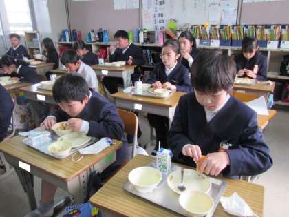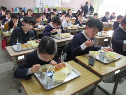 給食の時間が始まりました。今日もおいしくいただきましょう。