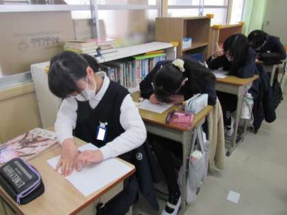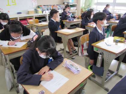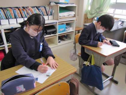卒業制作として作成するオルゴールのイメージを考えていました。テーマは「思い出」です。6年間の小学校生活をふりかえり,絵や言葉で表現します。しっかり下絵を固めたうえで本番に挑みます。