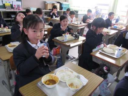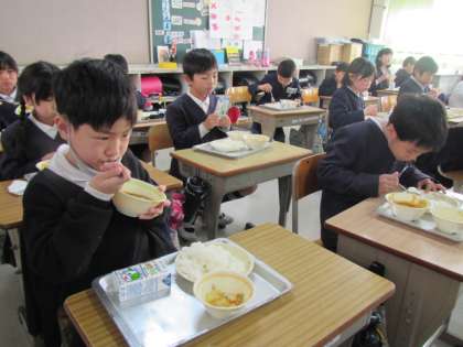 給食の時間が始まりました。今日もおいしくいただきましょう♪