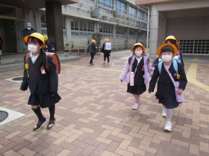 1年生の下校です。みんな安全第一で下校してくださいね♪