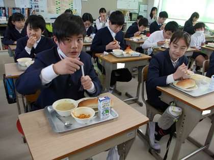 給食の時間が始まりました。今日もおいしくいただきましょう♪