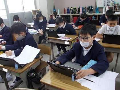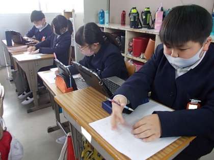 調べ学習に取り組んでいます。タブレットを使うと,興味があることをぱっと調べられていいですね♪
