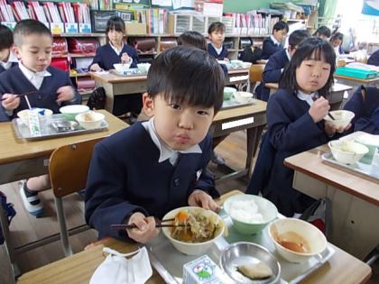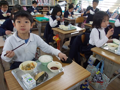 給食の時間が始まりました。いただきます!