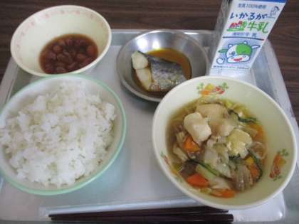今日は堺市産の野菜を使っています。それは、すきやき風煮に使われている春菊です。堺市では、たくさんの野菜が栽培されています。その中でも、春菊の生産量は多く、全国でもトップクラスの生産量となっています。