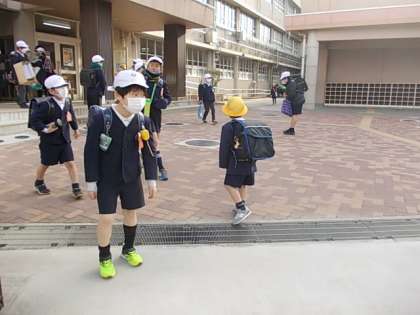 今日も一日よくがんばりました!みんな,元気に下校していきます♪