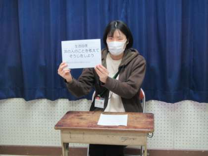 令和4年度の代表委員の発表,3月の生活目標についてのお話がありました。