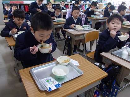 給食の時間が始まりました。今日もおいしくいただきましょう♪