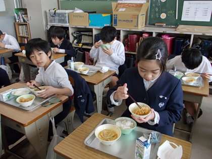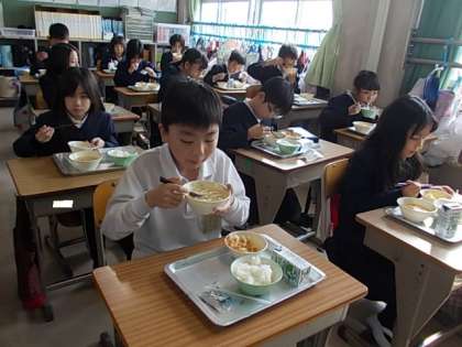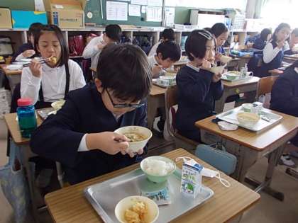 給食の時間が始まりました。今日もおいしくいただきましょう♪