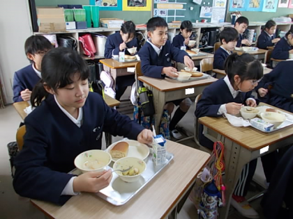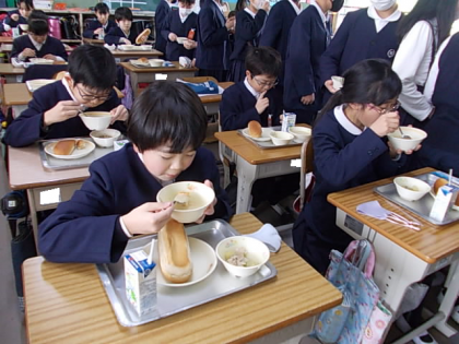 給食の時間が始まりました。今日もおいしくいただきましょう♪
