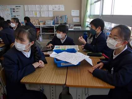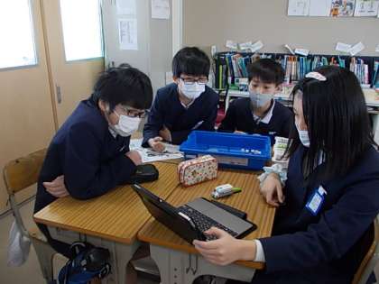 プログラミングを体験しています。コンピューターで出す指示通りにロボットが動きます。前後に動いたり,回ったり,音を出したり,…。それらを組み合わせることもできます。おもしろいね。
