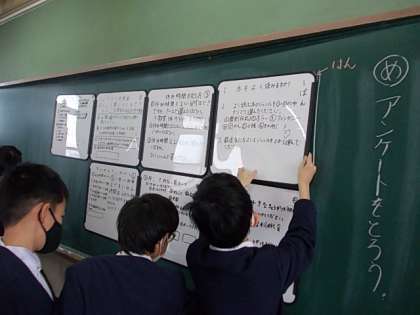 生活調査隊の調査活動が進んでいます。普段の自分の生活にかかわり,調べてみたいことをまとめ,みんなにアンケートを取ります。結果が楽しみですね。