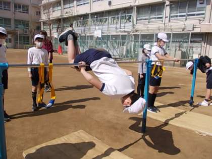 3月10日(木) 5年生体育「勢いをつけて回転しよう」♪