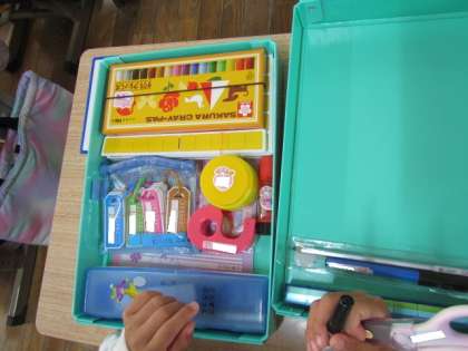 お道具箱の整理の仕方を学習しました。いつでも,使いたいものがすぐに使えるように整理しておこうね♪