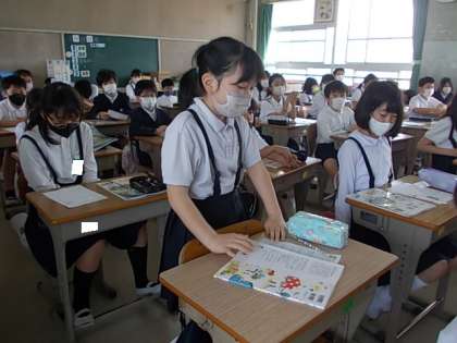 家庭科の学習が始まりました。1年間で学習する内容を大まかに把握した後,みんなで家庭科に関わる内容で自己紹介を行いました。