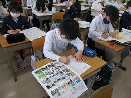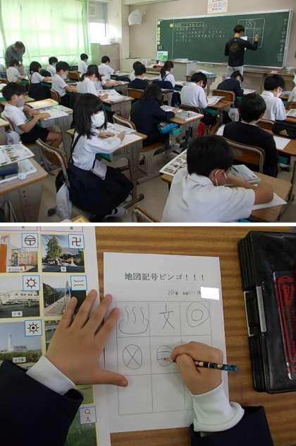 地図記号を使ってゲームを行っていました。地図記号ビンゴです。楽しく覚えられそうですね♪