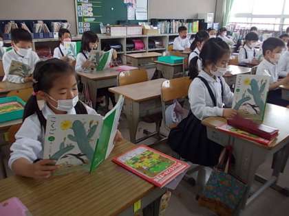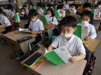 詩「おひさま」を号車ごとに声を合わせて音読していました。声を合わせて読むと気持ちがいいね♪